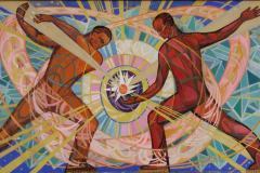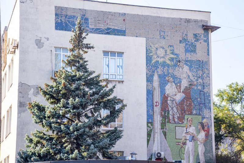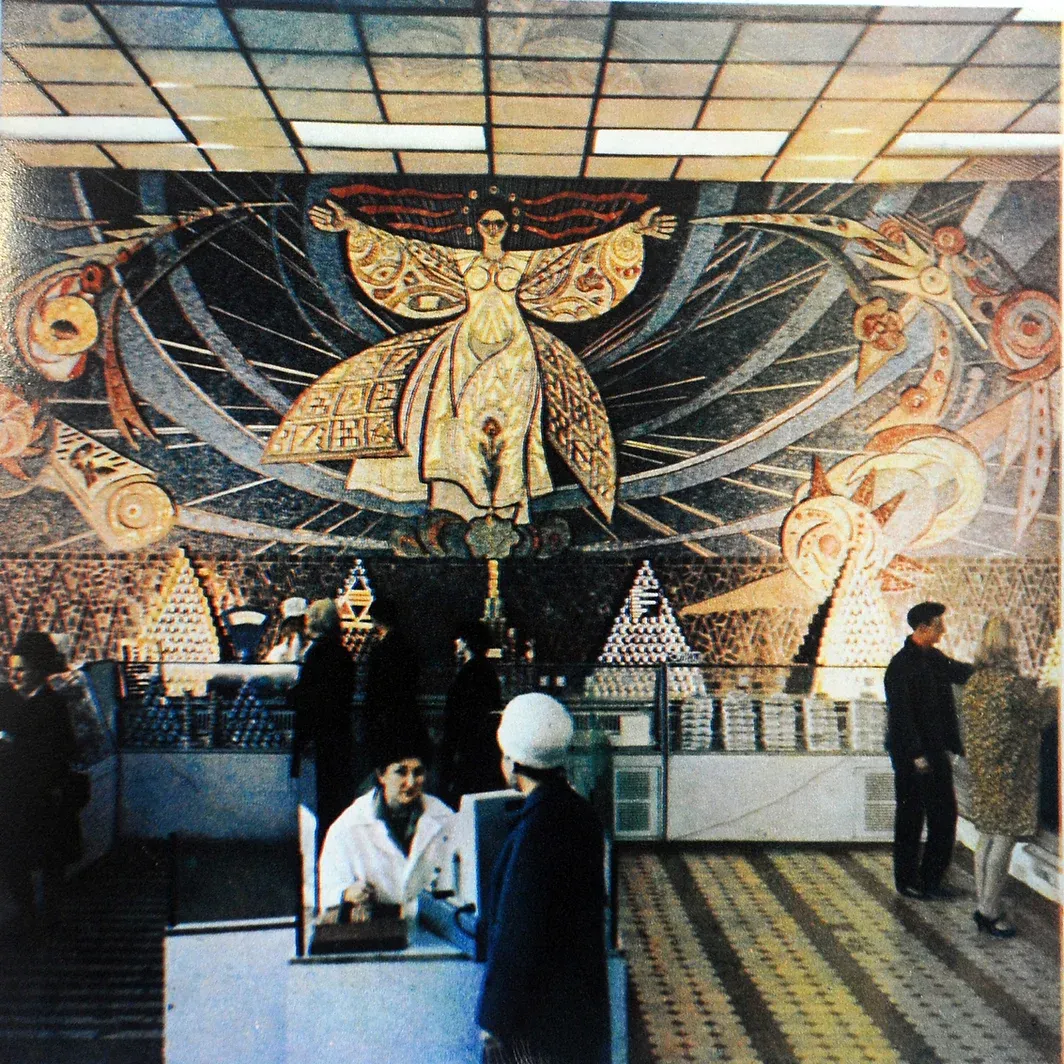 Так, наприклад, 1967 року до Маріуполя, тоді ще Жданова, прибула без перебільшення “зіркова” команда: Алла Горська, Віктора Зарецький, Галина Зубченко, Григорій Пришедько, Борис Плаксій, Василь Парахін, Надія Світлична. Менше ніж за два місяці художники створили дві мозаїки в ресторані “Україна” – це “Боривітер” та “Дерево життя”. І наприкінці 1967 року художники створюють ще одну масштабну мозаїку на першому поверсі цього ж будинку.